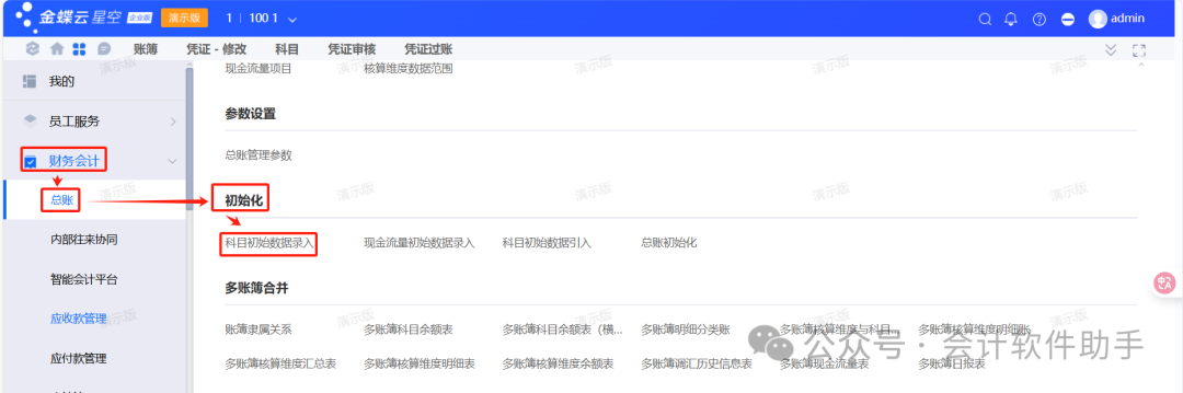 整体流程:基础设置(核算体系、账簿设置、系统参数和基础资料的设置)→总账初始化→日常业务(凭证录入、审核、过账等)→期末处理(期末调汇、结转损益、结账)一、基础设置(参照相关文档);二、总账初始化1、初始数据的录入(1)手工录入期初数据:财务会计→总账→初始化→科目初始数据录入,录入完之后点保存,然后再点试算平衡;(注...