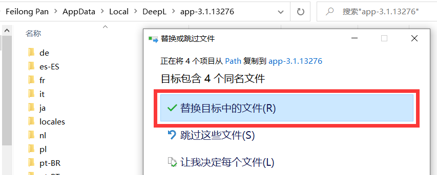 - 点击替换目标中的文件。