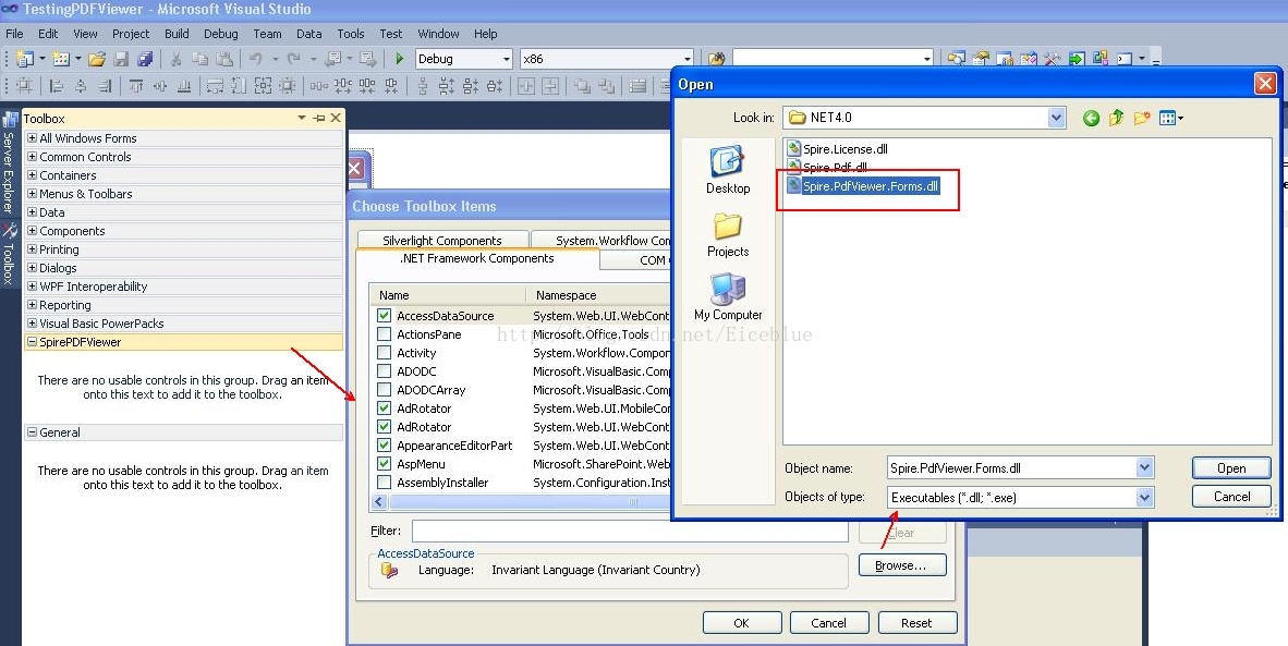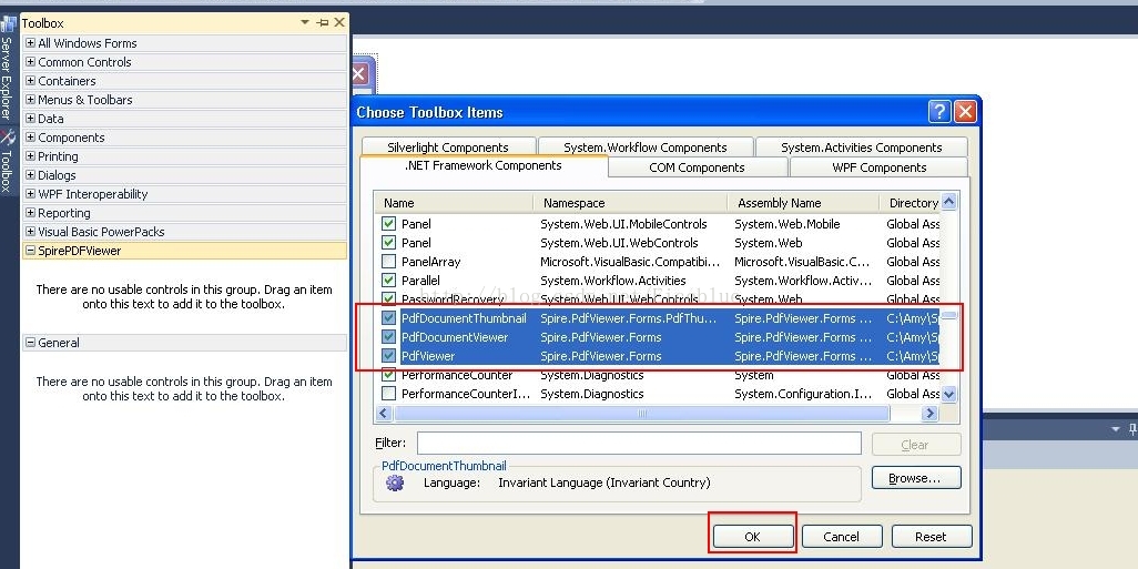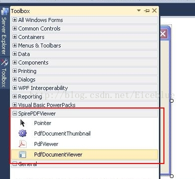 2、接下来是把PDFDocumentViewer控件,PDFViewer控件添加到工具箱里。