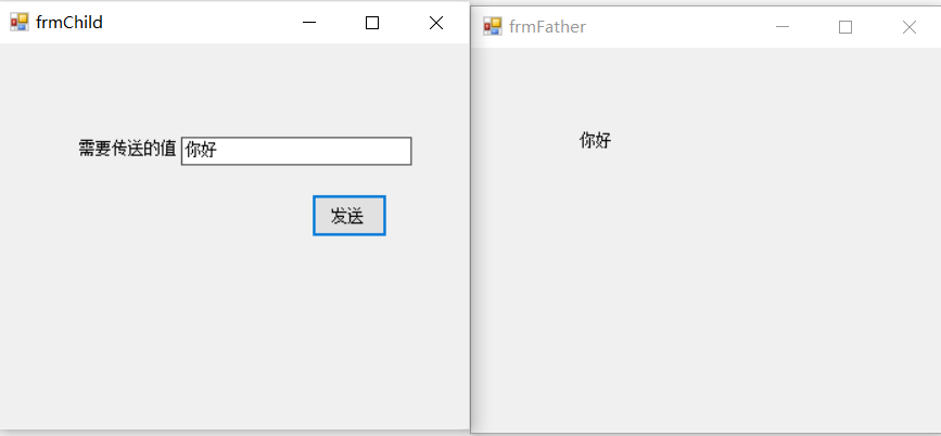 通过子窗体声明委托,父窗体实现委托,通过子窗体向父窗体传值。