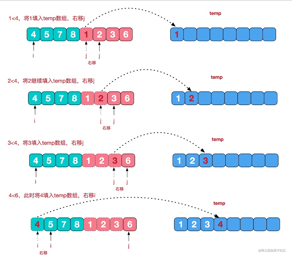 16.          // 将空出的位置,填入当前值, 下标j位置空出