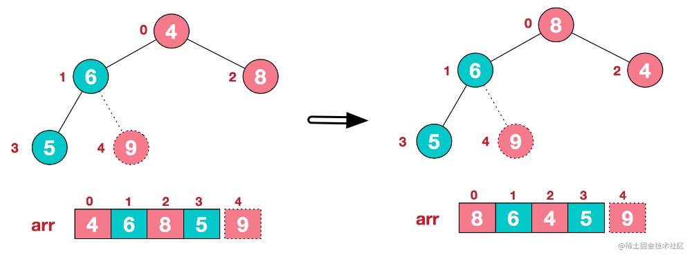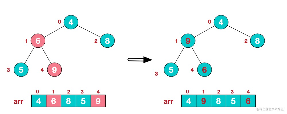 7.            // 当下标大的数字,小于 下标小的数字,进行交互