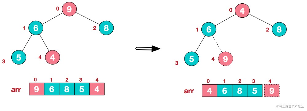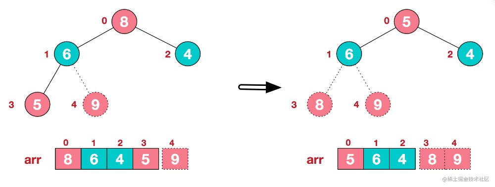10.      const x = arr[i]; // 取出比较值x,当前位置i空出,等待填入