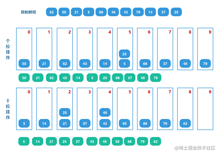 19.          const bucketIndex = getDigitNum(arr[k], i); // 获取当前进制位上的数字