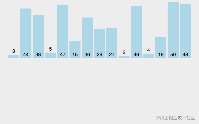 34.      arr[i] = x; // 将空出的位置,填入缓存的数字x,一轮排序完成