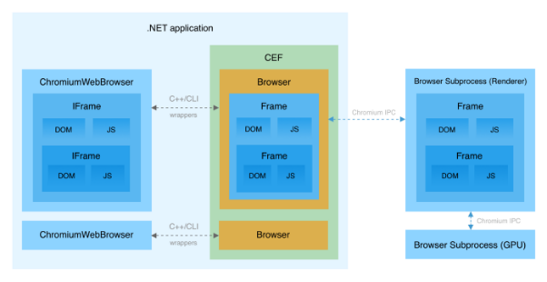 ![]() 为 WPF 或 WinForms 应用程序选择浏览器组件,对于那些搜索基于Chrome的解决方案的人来说,DotNetBrowser[1]和CefSharp[2]是最明显的选择。 本文是我们的客户在考虑其项目的开源库和商业库时提出的最常见比较点的汇编。 引擎CefSharp 实际上是 Chromium Embedded Framework[3] (CEF) 的 .NET 包装器。包装通过 C++/CLI 完成。 DotNetBrowser 在底层不使用 CEF 或 C++/CLI。相反,它采用了自己的方法直接与 Chromium 集成。它启动一个功能齐全的 Chromium 引擎,并通过进程间通信 (IPC) 与其进行通信。 架构在 CefSharp 中,Chromium 引擎直接在您的 .NET 进程中初始化[4]。初始化和关闭都必须在主应用程序线程(通常是 UI 线程)中执行。在不同的线程中调用它们通常会导致冻结。 此外,每个进程可以执行一次初始化和关闭。这个限制来自 CEF 本身,在执行关闭后尝试重新初始化 CefSharp 将导致错误。 ![]() 在 DotNetBrowser 中,Chromium 引擎在单独的本机进程中进行初始化。不需要在主 UI 线程上执行此操作——即使在工作线程中也可以执行此操作。 您可以同时初始化和使用具有不同配置的多个 Chromium 引擎,这在 CefSharp 中是不可能的。您可以在不再需要 Chromium 时将其关闭并随时重新初始化。 ![]() 稳定性和内存使用在单独的进程中运行 Chromium 有更多优点: