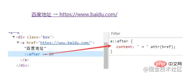 content: ' → ' attr(href); /* 在 href 前显示一个箭头 */