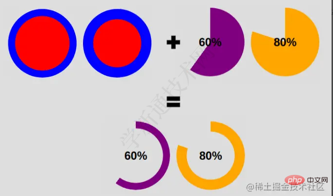 知识点1: inset: 0; 相当于 top: 0; right: 0; bottom: 0; top: 0; 知识点2: conic-gradient 圆锥渐变,css 方法, 更多内容, 这里的 #0000 是 transparent 的十六进制。 #0000 Hex Color · Red (0%) · Green (0%) · Blue (0%). conic-gradient应用之后: ![]() 为了使得仅是边框的区域被看到,我们使用 mask 属性去隐藏中间圆的部分。我们将使用 radial-gradient() 方法: radial-gradient(farthest-side,red calc(99% - var(--b)),blue calc(100% - var(--b))) 上面代码应用后,可得到效果图如下: ![]() 我们的目标如下图: ![]() 我们更改下代码即可实现: <div style="--p:60;--b:10px;--c:purple;">60%</div>