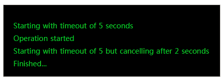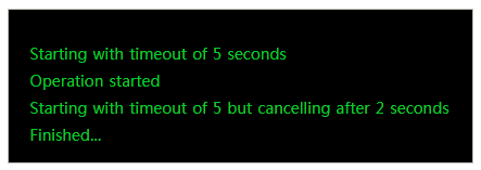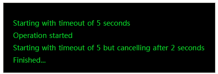 Console.WriteLine("Starting with timeout of 5 but cancelling after 2 seconds");