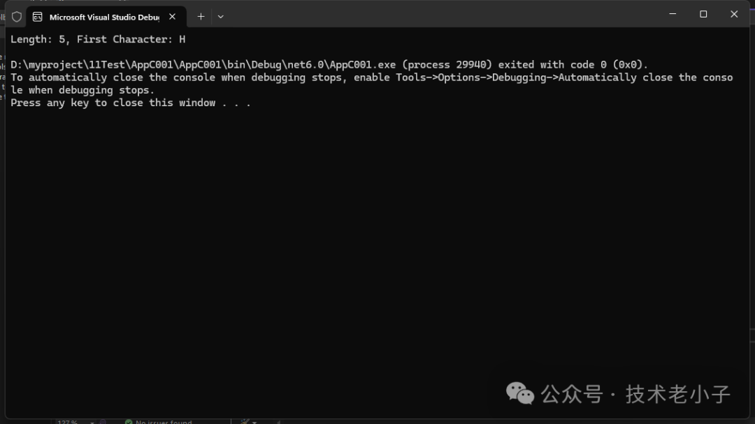 namespace AppC001 { publicclassAnalyzer { // 分析字符串,返回长度和首字符 publicvoidAnalyzeString(string input, out int length, out char firstChar) { length = input.Length; firstChar = input[0]; } } publicclassProgram { publicstaticvoidMain() { // 调用方法 Analyzer analyzer = new Analyzer(); analyzer.AnalyzeString("Hello", out int len, out char first); Console.WriteLine($"Length: {len}, First Character: {first}"); } } }
