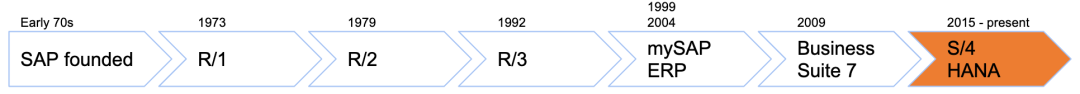 48年的SAP,经历了近半个世纪的发展,成为了大型企业数字化的代名词,也成为了,陪伴大量优秀中国企业成长的良师益友。现如今,几乎企业软件的方方面面,它都能囊括,并在各行各业形成解决方案、最佳实践。但这个过程并不是一蹴而就、一帆风顺,其中也经历过各种混乱、错误、迷失。并且,它也是和很多国内的企业软件一样,也是从解决一个小问题开始,不断的发现新问题,一步步完善拓展的过程。现在,大型企业和组织直接会使用S/4 HANA,或者升级到S/4 HANA。但是HANA到底是什么?与之前的版本有何不同?为什么会有这样的变化?SAP是怎么一步步变成现在这个样子的?这些问题的了解,相信可以帮助一些年轻的顾问和SAP的客户,得到更多角度的认识。这也是这篇文章的目的。或许,这些内容,还能够对国内ToB行业的同行,在产品演进的构思上、在错误思路的规避上、在差异化产品的寻找上、在核心领域的借力上,能够有所启发,那则更好。SAP的发展,大致可以将产品历史分成如下六个阶段,并保持着每十年,进行一次大的升级迭代。SAP由1970年代初期的许多前IBM员工创立。他们的第一个系统称为RF(实时财务),后来更名为R/1。SAP的产品策略基于三个主要概念:提供标准化的“现成的解决方案”:在许多公司,从头开始构建自己的应用程序的时代,SAP的计划是构建,适用于许多公司的软件产品,进行很少的配置就可使用实时:输入到应用程序中的信息,可在整个应用程序中实时获得;集成:同一数据在系统的多个功能部分之间共享,从而减少了对冗余数据输入的需求。一个来自制造业的例子。原材料被转换为成品,然后出售并运送给客户。这个过程涉及许多部门。采购,仓储,制造,财务,销售等。如果我们仅考虑其中一部分,从供应商处接收原材料,需要进行两项活动。在ERP之前,这些活动可能已经分别完成,例如,仓库管理可能已在一天结束时,更新了库存清单,然后发送了信息副本以供财务更新帐户。一整天,库存和财务信息,都不会是最新的或一致的。并且浪费了两次输入相同数据的精力。使用SAP,当仓库更新库存时,会计记录将自动实时更新。在后台,ERP在不同的表之间有很多连接,可以使不同职能和团队的信息保持同步。一旦了解了这一点,我们就会了解ERP系统的价值,以及它们为何如此受欢迎。我们可以想象,在70年代,解决这样的问题对于企业的重要性,以及以当时的技术,帮助多行业企业,连接流程和数据时的复杂。同样的道理,SAP采用了同样的目标标准,应用于销售,营销,生产等。从技术角度来看,从R/1到R/2的转换,是一个更为微妙的演变,随着SAP开始扩大其客户群,核心功能也有所增加。关于R/2,核心是一个扩展的思路,这个过程中,主要是对业务、行业特性的覆盖度上,随着客户和项目越来愈多,日益丰满。也是在这个时期,SAP拿下很多超大型客户,他们的加入,不但让SAP活了下来,而且带来了当时各产业链顶端企业的治理之道,和管理理念。很多客户甚至会和SAP一同进行研发升级。甚至,不少美国和欧洲的标杆客户,会直接到SAP总部,在附近的大学内,进行沟通、学习、提升,不断迭代项目中的需求,并设计未来的项目规划。曾听某美国客户说,那时候,他们近二十人的团队,甚至到德国住了一年,成天与SAP一同进行脑力碰撞和产品研发,同时远在美国的SAP实施,也并行着如火如荼的开展。从R/2到R/3的转换意义重大,并进行了许多重大更改: R/1和R/2被分类为大型机系统,R/3被分类为客户端/服务器系统。这是随着计算机普及过程中,做的一次更灵活、更经济的架构式改进。台式机(例如Windows台式机或笔记本电脑)上有更完整的“图形用户界面”;从R/2到R/3的转变,以及R/3到90年代的持续发展,也代表了所涵盖业务流程的显着扩展。R/2和R/3是非常不同的系统。要从一个系统切换到另一个系统,您需要在加载到R/3之前提取和转换数据,还必须映射所有进程。也可以这么说,从R/2切换到R/3,类似于从非SAP系统切换到R/3。在谈论R/3时,考虑规模和全球化也很重要。大型机系统通常是为单个国家或业务部门实施的。R/3的更便宜,可扩展性更强的体系结构,为实现一个涵盖整个地区,或世界范围内的组织业务的R/3系统提供了机会。全球化组织覆盖,这很重要,因为它是导致更大数据量和更多性能挑战的因素之一。作为一个复杂的集成系统,R/3每年都在发展,并在全球范围内被大型组织使用。这是HANA附带的场景,也是一个很有前瞻性的设计,如今甚至还有很多企业使用的还是R/3系统。为了简单说明R/2和R/3的不同,我们可以看几个屏幕。R/2 具有非常简单的界面,其中功能键和事物代码用于在字段之间导航;我们将看到,SAP在R/3和S/4 HANA之间的外观和感觉也有了很大的提高。这是一个从事R/3工作的人都熟悉的图表,它概述了R/3涵盖的不同模块或“功能区域”。尽管ERP和R/3似乎很复杂;而且,它所做的就是通过在系统中输入交易记录有关业务活动的信息,并将有关发生的情况的信息存储在数据库中。然后,您可以查看和调整该信息来管理企业。MM - 物料管理,记录内部物流和外部交集点的物料移动信息,并自动库存计算。当我们来到2000年时,SAP品牌宣传变得有些混乱。有许多关键重点领域,我们看到R/3被称为mySAP.com,也被称为ERP(技术上称为ECC)。值得注意的重点是: Web技术的出现,以及对ERP能够通过互联网以B2B或B2C进行连接的需求,mySAP.c