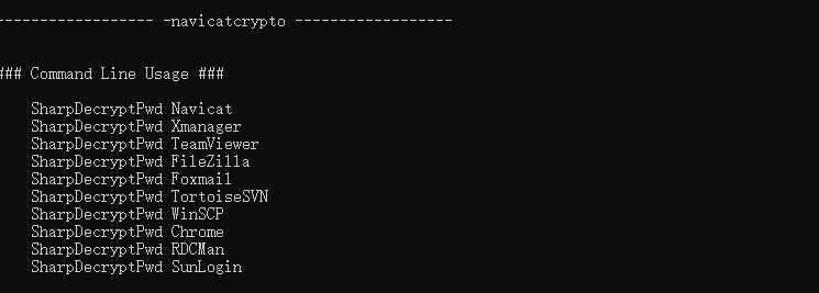 SharpDecryptPwd的使用极其简单,完全通过命令行操作,无需图形界面,这使得它非常适合在各种环境下快速部署和使用。以下是基本的使用方法: