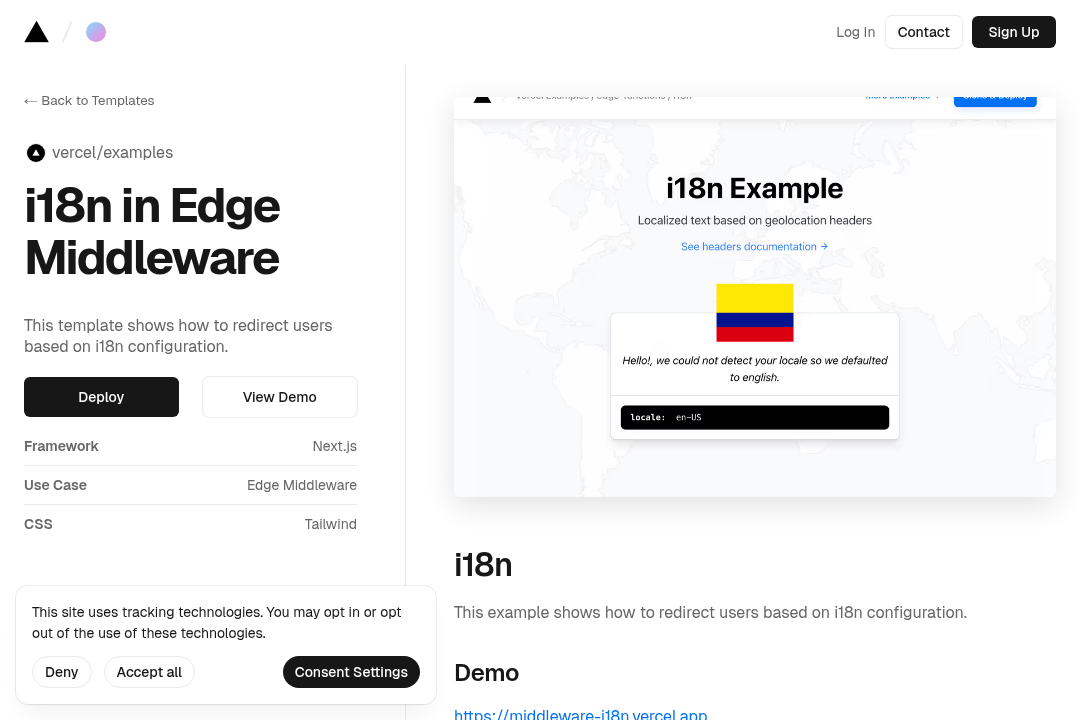 兄弟们,今天二冰给你们带来一个解决多语言切换痛点的神器!想象一下:你的网站访问者来自全球各地,有人习惯中文,有人习惯英文,还有人习惯日语...每次手动切换语言是不是特别麻烦?现在有了这个基于Vercel边缘函数的i18n中间件,访问者第一次进入网站就能自动匹配最合适的语言版本,再也不用反复点击切换了! 项目简介这个项目叫【i18n in Edge Middleware】,是一个基于Vercel边缘中间件的多语言自动重定向解决方案。它能根据用户浏览器的语言设置,自动跳转到对应的语言版本。比如你的浏览器设置是中文,访问网站时就会自动跳转到中文界面;如果是英文浏览器,就直接展示英文版本。 ![]() 演示截图 项目优势