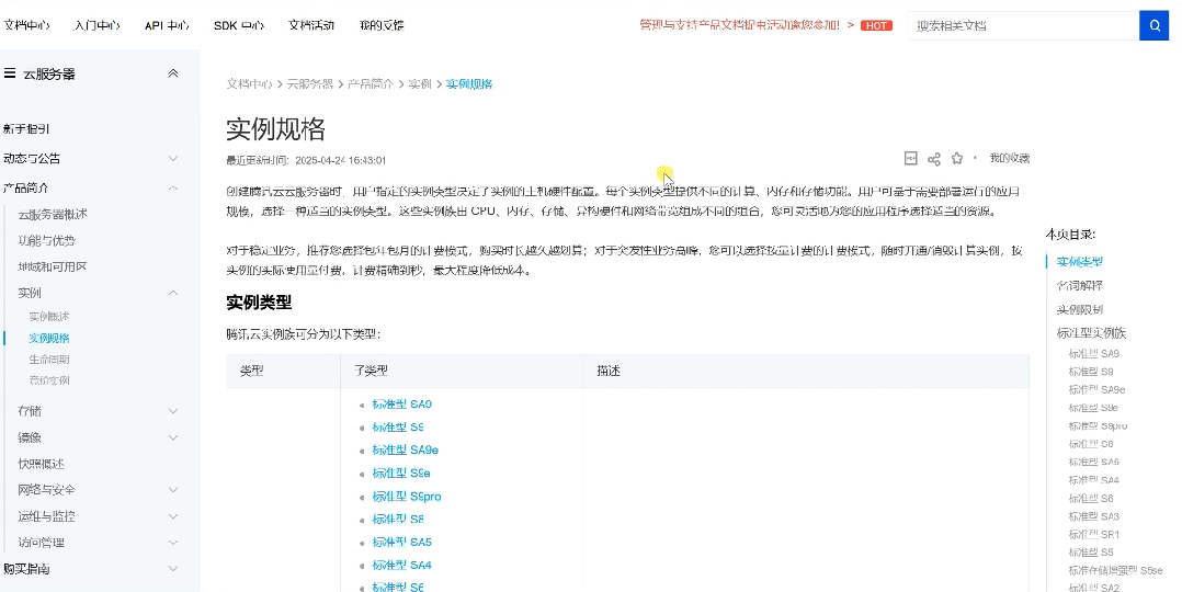 云服务器实例规格官方文档:https://cloud.tencent.com/document/product/213/11518