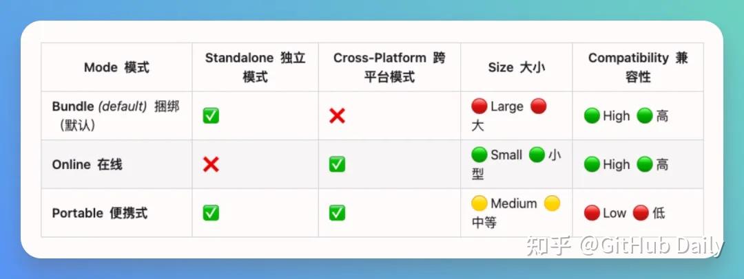 • Online 模式:小体积跨平台包,运行时下载依赖;