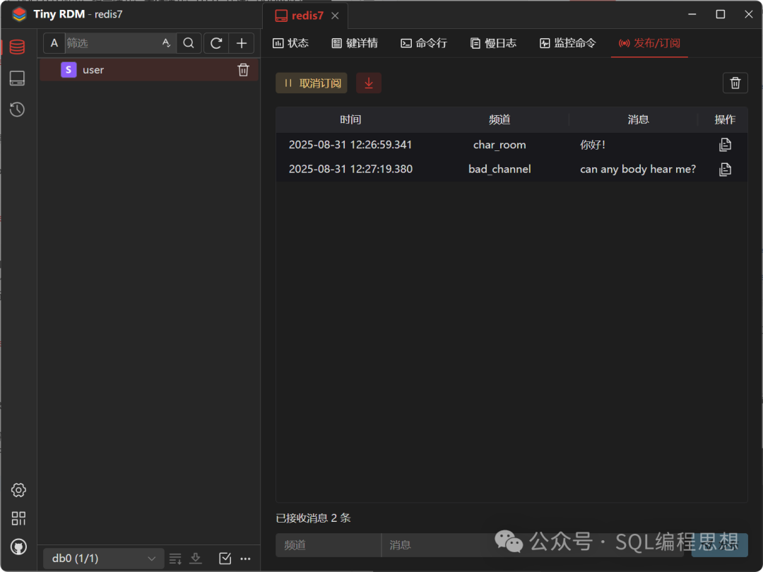 - • 发布/订阅(Pub/Sub):支持 Redis 的发布订阅功能,可以订阅频道并接收消息。