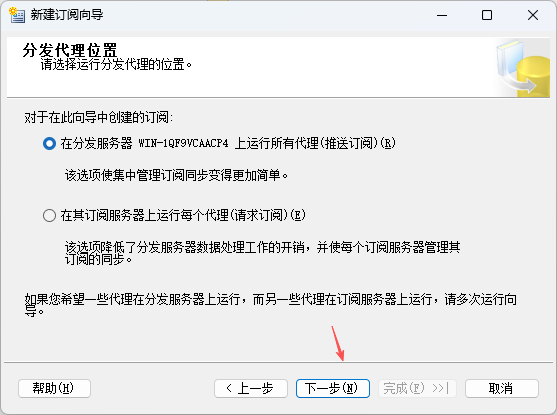 1. 在刚刚建立的发布右键-新建订阅,第一个页面默认下一步,选择订阅的发布,下一步
