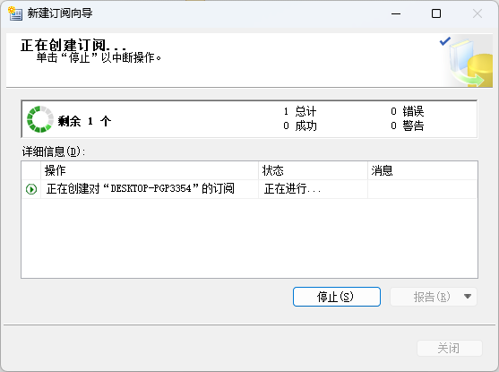 13.  等待订阅完成,关闭,检查发布下是否有订阅