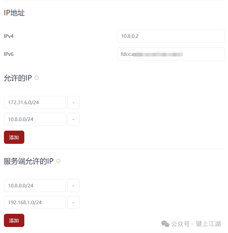 服务端允许的IP:代表服务端将哪些IP地址路由到客户端
