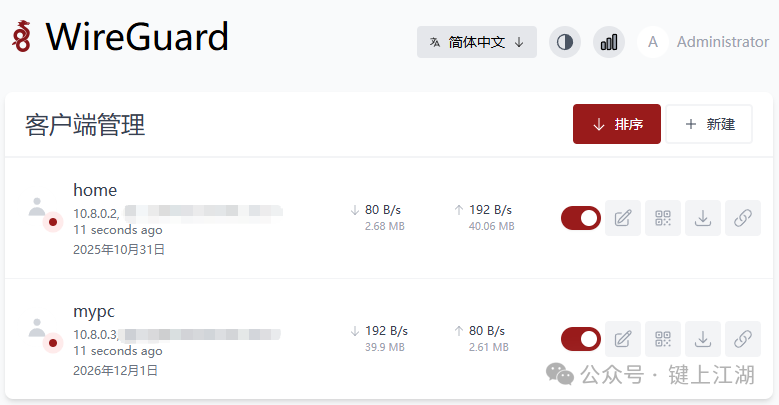 服务端部署可参考我的上一篇文章:一键拥有可视化 WireGuard VPN:用 wg-easy 打造你的轻量级远程办公利器
