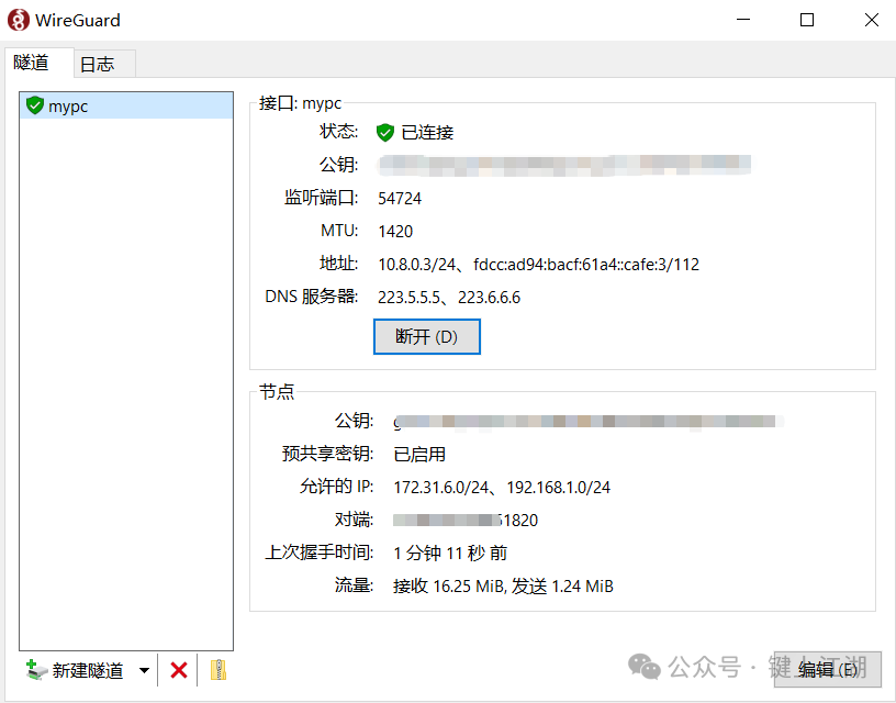 1. 1. 在 wg-easy 创建 PC 客户端(如 mypc),下载配置 mypc.conf
