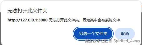 如果选中的文件夹包含系统文件,将无法打开,并提示选择其他文件夹。