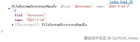 不管是选择文件还是文件夹, 确认选择后,返回的FileSystemDirectoryHandle,FileSystemFileHandle对象都继承自FileSystemHandle接口,所以我们先来了解下。