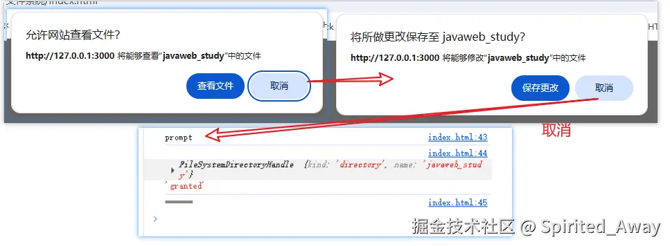 注意:我们访问一个文件或者目录的读写操作所依赖的文件访问权限在刷新或关闭页面并且页面所属的源没有其他标签页保持打开的情况下不会继续保有。