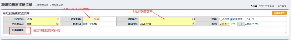 ![]() 1.进入ERP系统之后,点击“BOE定制”,点开“正常加工”,找到“新增成品送货单”。 2.进入界面之后,按图操作:点击选择销售客户,然后再点击选择送货类型。