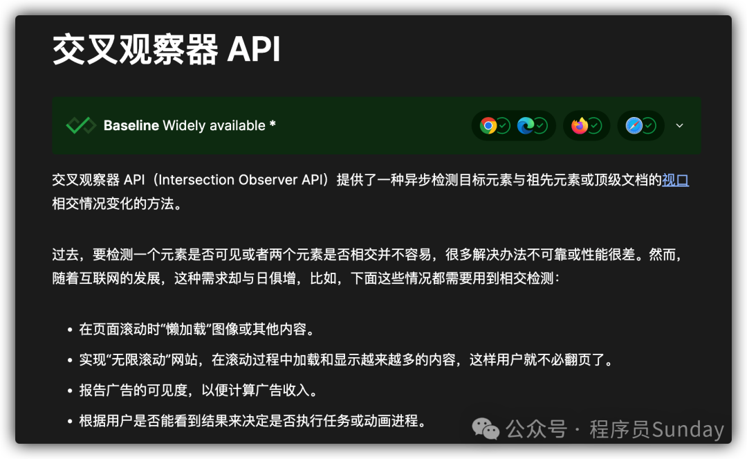 确实是最快捷的方式;但如果你需要更多控制、更复杂的体验,IntersectionObserver