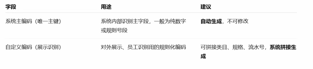 有的公司喜欢把所有信息都塞进去:颜色、品牌、尺寸、材料……结果一个编码特别长,系统也跑得慢,员工也记不住。