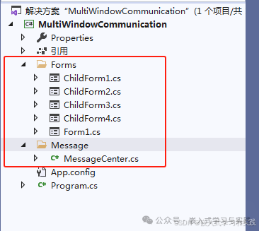 using System;using System.Collections.Generic;using System.Linq;using System.Text;using System.Threading.Tasks;namespace MultiWindowCommunication.Message{    //class MessageCenter    //{    //}    // 4. 使用静态类作为消息中心    public static class MessageCenter    {        // 定义消息接收事件        public static event Action<stringstring> MessageReceived;        // 发送消息的方法        public static void SendMessage(string sender, string message)        {            // 触发所有订阅者的事件            MessageReceived?.Invoke(sender, message);        }    }}