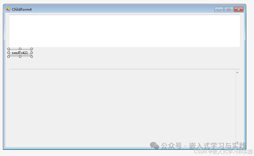 using System;using System.Collections.Generic;using System.ComponentModel;using System.Data;using System.Drawing;using System.Linq;using System.Text;using System.Threading.Tasks;using System.Windows.Forms;namespace MultiWindowCommunication.Forms{    public partial class ChildForm3 : Form    {        // 定义委托        private Action<string> _callback;        public ChildForm3()        {            InitializeComponent();        }        // 设置回调函数        public void SetCallback(Action<string> callback)        {            _callback = callback;        }        private void btnSendToMain_Click(object sender, EventArgs e)        {            if (!string.IsNullOrEmpty(txtMessage.Text) && _callback != null)            {                // 通过委托向主窗口发送消息                _callback(txtMessage.Text);                txtMessage.Clear();            }        }    }}