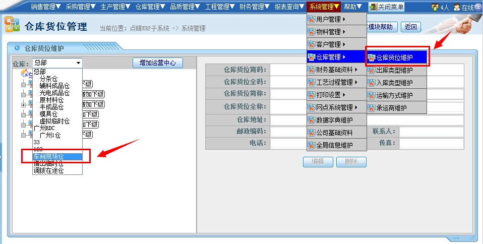 1.先检查仓库货位是否有车间现场仓的货位。如果没有,请联系我点晴公司系统管理员。